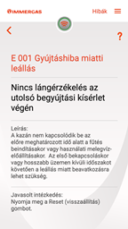 Nem törölhető (Reset) hiba esetén engedéllyel rendelkező szakembertől (pl. az Immergas szervizhálózat munkatársától) kérjen segítséget. Hiba esetén a „Riasztások” képernyőn megjelenik az „Exxx” kód, ahol az „xxx” a hibakódot azonosító számot jelenti.