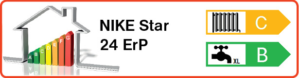 A NIKE Star 24 ErP fali gázkazán 23,6 kW teljesítménnyel képes fűtési és átfolyós rendszerben használati melegvizet előállítani. Kompakt méretének (mélysége csak 24cm!) és új, elegáns megjelenésének köszönhetően szinte bárhová felszerelhető. A NIKE Star 24 ErP kazán új, elektronikus modulációs panellel rendelkezik, digitális kezelőfelülettel. A készülék a digitális távszabályozóval (DRC) is együttműködik. Az automatikus by-pass része a készülék alapfelszerelésének és lehetővé teszi a kazán használatát bármely fűtési rendszerben. A NIKE Star 24 ErP hagyományos, nyitott égésterű készülék.