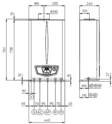 • 75% "C" kategória fűtés, "B" XL kategória HMV Szezonális hatásfok (2010/30/EU)