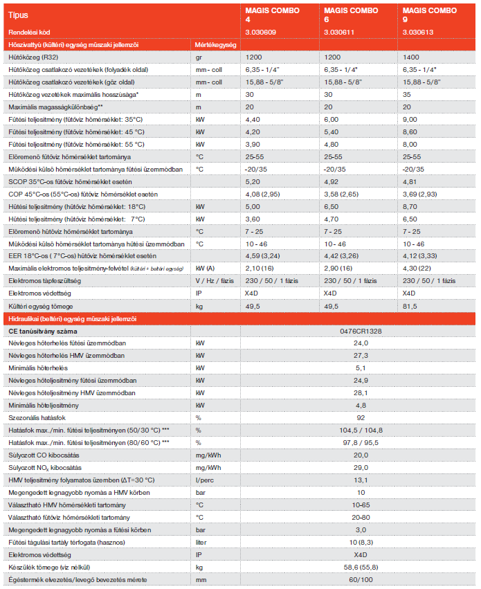 - 9,00kW /4,81 Névleges fűtési teljesítmény/COP (35/30°C DT és 7°C külső hőm. mellett)