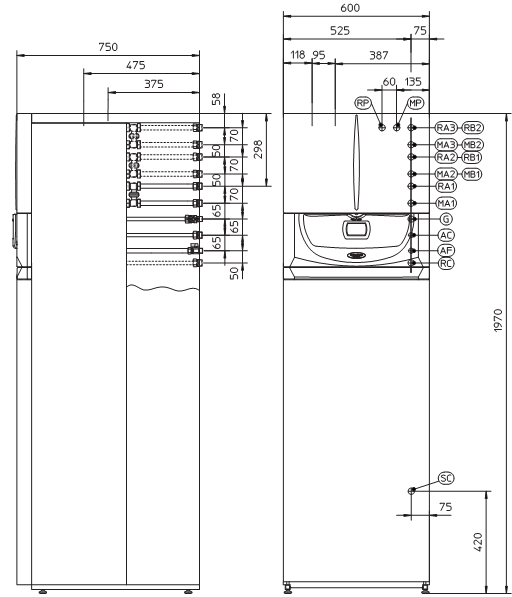 - 1970 / 600 / 750 Méret (mag/szél/mély)