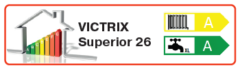 A Victrix Superior 26 fali készülék 24,7 kW teljesítménnyel képes fűtési, illetve átfolyós rendszerben használati melegvizet előállítani. A Victrix Superior 26 ErP kazánok új, nagyteljesítményű hidraulikai egysége kis szervizigényű. A külső érzékelő (opcionális) csatlakoztatása esetén időjárásfüggő szabályozás (alap felszereltség) használata is lehetséges.