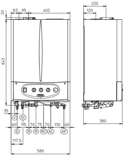 • 843 / 580 / 380 Méret (mag/szél/mély)