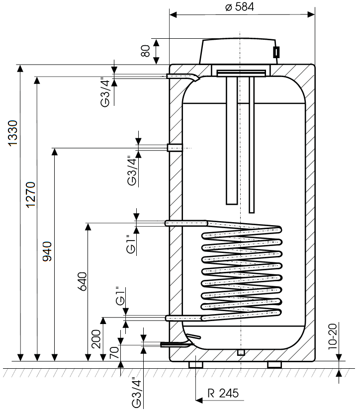 - Tároló és hőcserélő anyaga: zománcozott acél